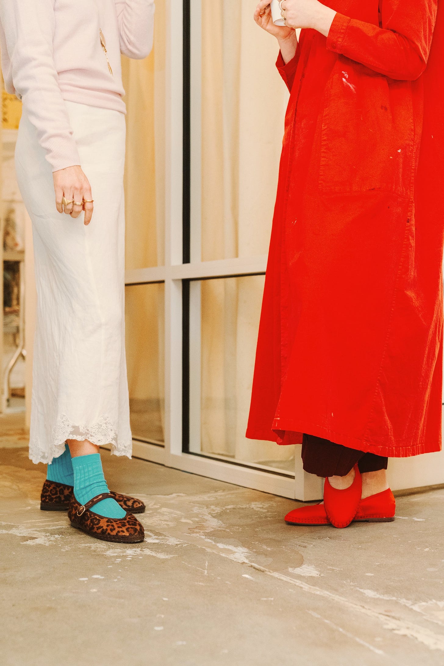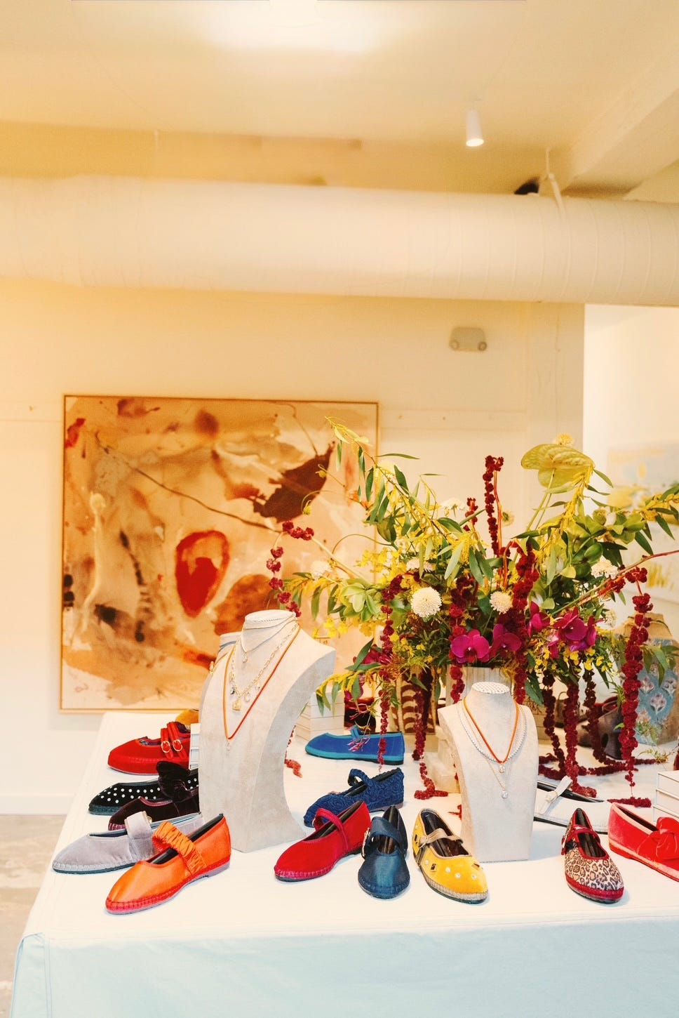 Hart’s playful new enamel bezel collection—full of cheerful color—was styled out on our main area table, a few pairs of Flabelus shoes, which, by the way, are effortless, comfortable, and beautifully made. I also had the pleasure of meeting founder Beatriz, whose thoughtful approach to design you can truly feel in every pair.
