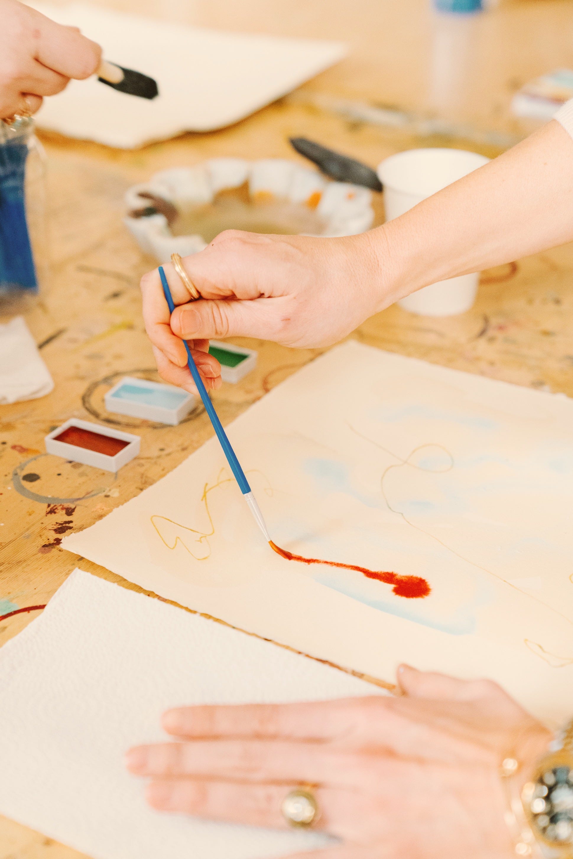 A typical morning in my working studio is quiet; everyone settles in, music playing, coffee brewing, and by 11 o’clock, it’s usually just time for lunch before heading back to painting. So it was refreshing to start the day with something different, a mix of artistic activity, conversation, and energy that filled the space in a completely new way.